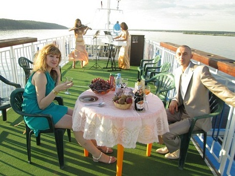(Jul Stulikova): "Cамый шикарный и романтичный подарок преподнес мне муж на 35-летие! Он арендовал на два часа двухпалубный корабль, с банкетным обслуживанием, и мы плавали по Каме с бокалами шампанского под живую музыку прекрасного дуэта и наслаждались закатом!"