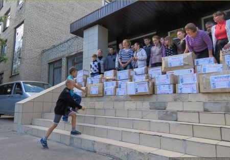 Гуманитарный проект Общероссийской общественной организации защиты семьи "Родительское Всероссийское Сопротивление" сообщает, что в рамках проекта "Дети России – детям Донбасса" в город Торез Донецкой народной республики была доставлен гуманитарный груз от учащихся Набережных Челнов. Челнинские школьники собрали 150 коробок канцтоваров, моющих средств и просто подарков для детей Донабасса.