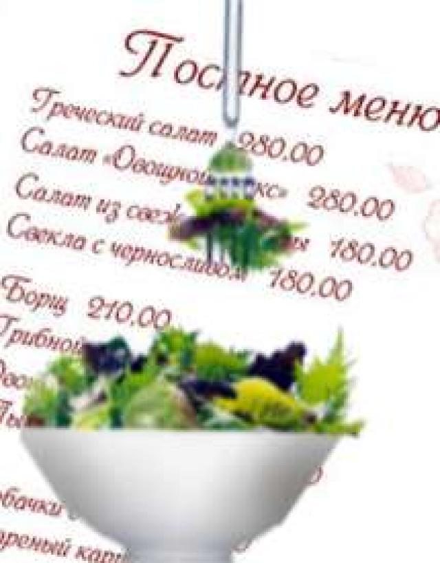 Некоторые заведения общепита формируют из постного меню бизнес-ланчи за 150-250 рублей. Если заказывать постные блюда из расширенного меню кофе, то обед будет стоить примерно на 20-25% выше, чем первое-второе-третье с куском мяса или рубленой котлетой. Некоторым разнообразием в меню постника выглядят блюда японской кухни — роллы, суши, супы. Минимальная стоимость «японского» обеда, состоящего из острого овощного супа и простых роллов с несложной начинкой, к примеру, с лососем - 100-120 рублей.