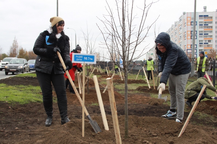 Сегодня сотрудники «Радио Дача» приняли участие в акции по озеленению города, на пересечении ул. Академика Королева и пр. Чулман были посажены 34 липы.
