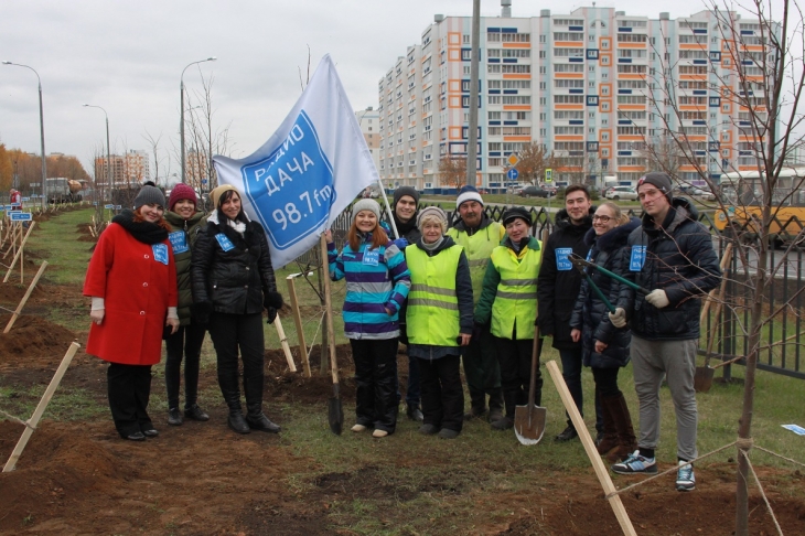 Радиоведущие и менеджеры вышли сегодня на улицу сажать деревья