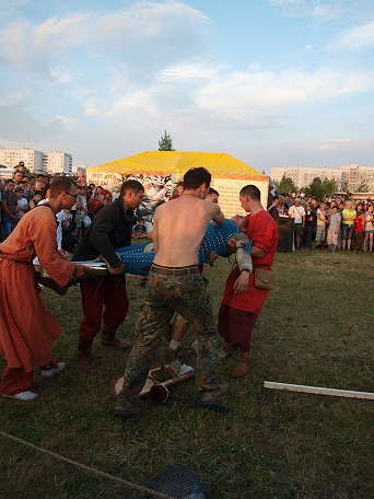 Сначала воины сражались в личных поединках. В двух категориях победил Рустам Ибатуллин из Зеленодольска, это опытный боец, участник сборной республики. Два вторых и одно третье место увезли нижнекамцы, третье место в категории «щит-меч» занял Тимур Макраев из Набережных Челнов. Он получил травму в поединке и в категории «меч-меч» сражаться уже не смог. По словам ведущего из Зеленодольска, который не раз проводил сражения, турнир получился весьма жестким, к боям стенка на стенку «рыцари закончились». Вместо битвы пять на пять рыцари сразились два на два. Вот тут все и увидели, что такое жесткий турнир. Битвы были стремительными, удары настоящими. Чтобы участники не вылетели на зрителей, их тормозили жердями, возвращая на ристалище. По окончании битвы одного бойца, получившего рану, унесли с поля боя.