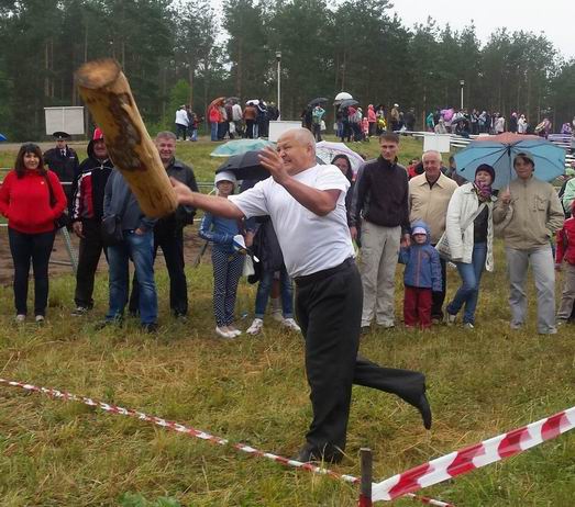 «Какой чудесный день, какой чудесный пень...» - пропел кто-то из толпы, наблюдающей за ходом метания бревна на дальность. Организаторы пояснили: соревнование это родом из леса — так развлекались когда-то лесорубы. Вес метательного полена - около 20 килограммов. Лучший результат — 8 метров 10 сантиметров.