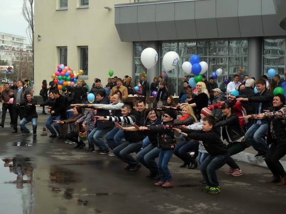Тут же можно было бесплатно перекусить бутербродами с чаем. Детишки играли в настольный футбол, пинали настоящий мячик, рисовали... Тех, кто повзрослее и поактивнее, перед началом зарядки разогревали фитнес-инструкторы.