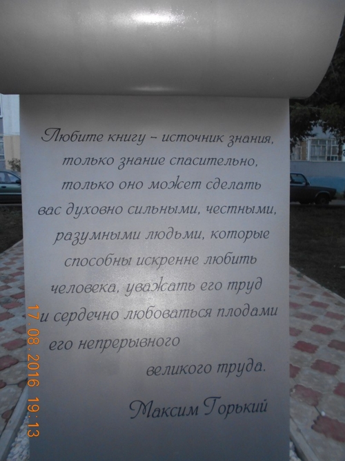 Скульптуру в литературном дворике в пос.ГЭС украсила цитата Максима Горького