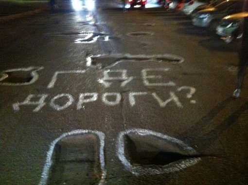 Участники акции собрались в 22.00 около "Ленты" и почти 2 часа помечали ямы на автодорогах Набережных Челнов. Они закрашивали выбоины, которые превышали по длине 15, по ширине - 60, и по глубине 5 сантиметров.Один из результатов их работы уже стал поводом для обсуждения Василя Шайхразиева, который переправил это фото Рафаилю Киямову.
