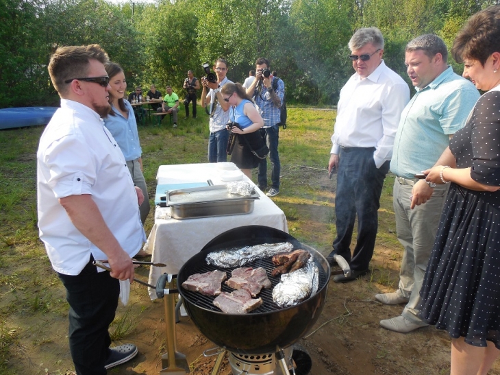 На сабантуй были приглашены бизнесмены города со своими семьями и коллективами. Для отдыхающих организовали концертную программу с участием местных артистов, игры и конкурсы, детские и спортивные площадки, тир, турнир на квадроциклах и другие состязания. Как положено на сабантуе, на ковре сошлись борцы куреш. А рядом дожидался победителя баран.
