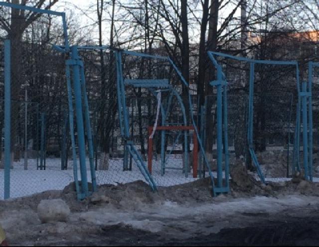 Тракторист перестарался и сломал ограждение игровой площадки в 26 комплексе