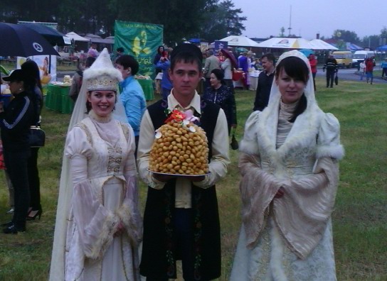По традиции высоких гостей ждали на спуске к Майдану, на пересечении проспектов Чулман и Хасана Туфана. Здесь выстроились шеренгами национальные общины в своих народных костюмах. Подошел руководитель исполкома г. Набережные Челны Фархад Латыпов с гостями из Казани и Севастополя. Ждали премьер-министра РТ Ильдара Халикова с мэром города Василем Шайхразиевым, которые, по первоначальной информации, должны были встречать министра культуры России Владимира Мединского. Но, как стало известно позже, он еще вчера дал "отбой". Действие началось без них. Представители общин пели, танцевали, далее - многочисленные угощения гостей от ресторанов и предприятий пищевой промышленности. "Изюминкой" стало подворье татарской деревни, выстроенное перед майданом. Здесь и изба, и хозяйственные постройки. Мастера гончарного дела демонстрировали свое умение, даже импровизированная пасека была.