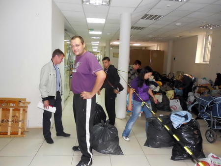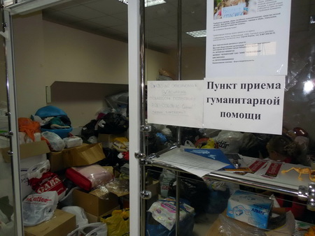 - Да. Ежедневно сюда приходят. Как вы знаете, 128 человек сюда прилетели организованной группой. Их разместили в камазовских общежитиях 1/07 и 1/08. Кроме того 43 человека, которые приехали своим ходом, живут в общежитии 20/09. Некоторые разместились у родственников. Так называемых неорганизованных беженцев уже около сотни. Из всех этих общежитий сюда приходят за вещами, мы их обязательно записываем, потому что нам нужна отчетность, чтобы могли сказать людям, куда делись продукты, медикаменты и вещи, которые они собрали. Если тех, кто живет в общежитиях 1/07 и 1/08, кормят бесплатно, то у беженцев в общежитии 20/09 этой помощи нет. Они проживают на платной основе, за них платит украинская община и бизнесмены, к которым мы обратились. Поэтому продукты, постельное белье и другие вещи первой необходимости мы стараемся в первую очередь направлять туда. Вот, например, нам принесли немного денег, один наш товарищ пошел на рынок, чтобы купить овощей и зелени, потому что люди приносят, в основном, тушенку, макароны и крупы - так называемый сухой паек. А свежих овощей и зелени не хватает для приготовления пищи. А ведь там еще очень много детей, которым нужны и фрукты, и молоко.