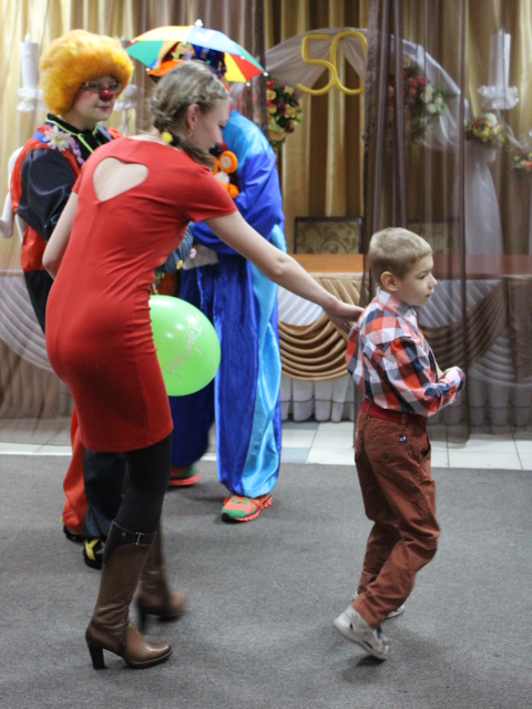 Сегодняшнее мероприятие можно рассматривать, как один из способов пресловутой социализации. Для маленьких гостей праздника волонтеры накрыли стол, подготовили шоу мыльных пузырей и выступление клоунов. Сначала ребята робко реагировали на выступление, но постепенно втянулись и стали более активно участвовать в процессе.