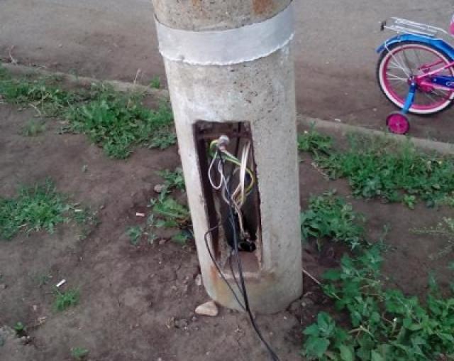 Халатной называет жительница Набережных Челнов Елена работу электриков, обслуживающих опору освещения в экстрим-парке "Гренада". Из столба, который установлен возле детской площадки, торчат электрические провода. Челнинка задается вопрос - что же,  администрация парка ждет в этой ловушке "новых жертв"? Заявка для исполнения направлена в исполком города.