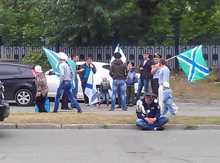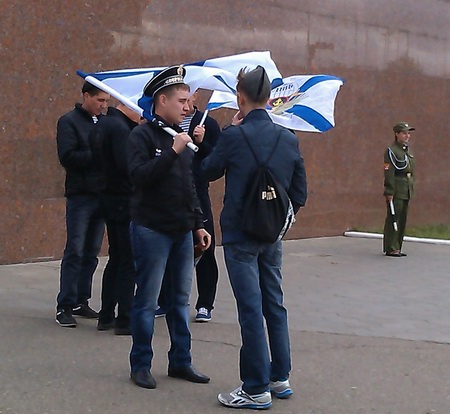 С самого утра по городу разгуливали молодые люди и мужчины в тельняшках и бескозырках. По проспектам то и дело проносились автомобили с торчащими прямо из окон с андреевскими флагами - в России празднуют день Военно-Морского Флота. В Челнах по многолетней традиции моряки собрались на митинг возле вечного огня. Здесь и ветераны Великой Отечественной и те, кто служил в мирное время, семьи с детьми и компании сослуживцев.