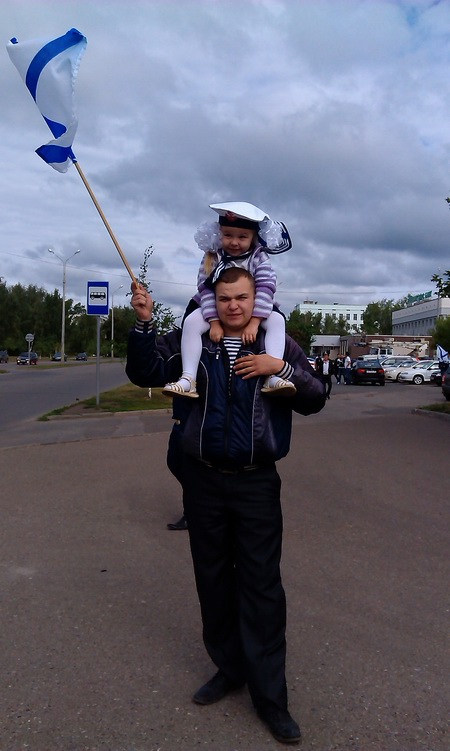 Александр: - Я в морской пехоте в 90-е годы отслужил два года. На праздник второй год прихожу с сыном.
