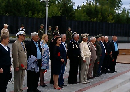 В ходе получасового митинга прозвучали слова поздравлений от официальных лиц города, память погибших моряков почтили минутой молчания, завершилась официальная часть праздника возложением цветов к Вечному огню.