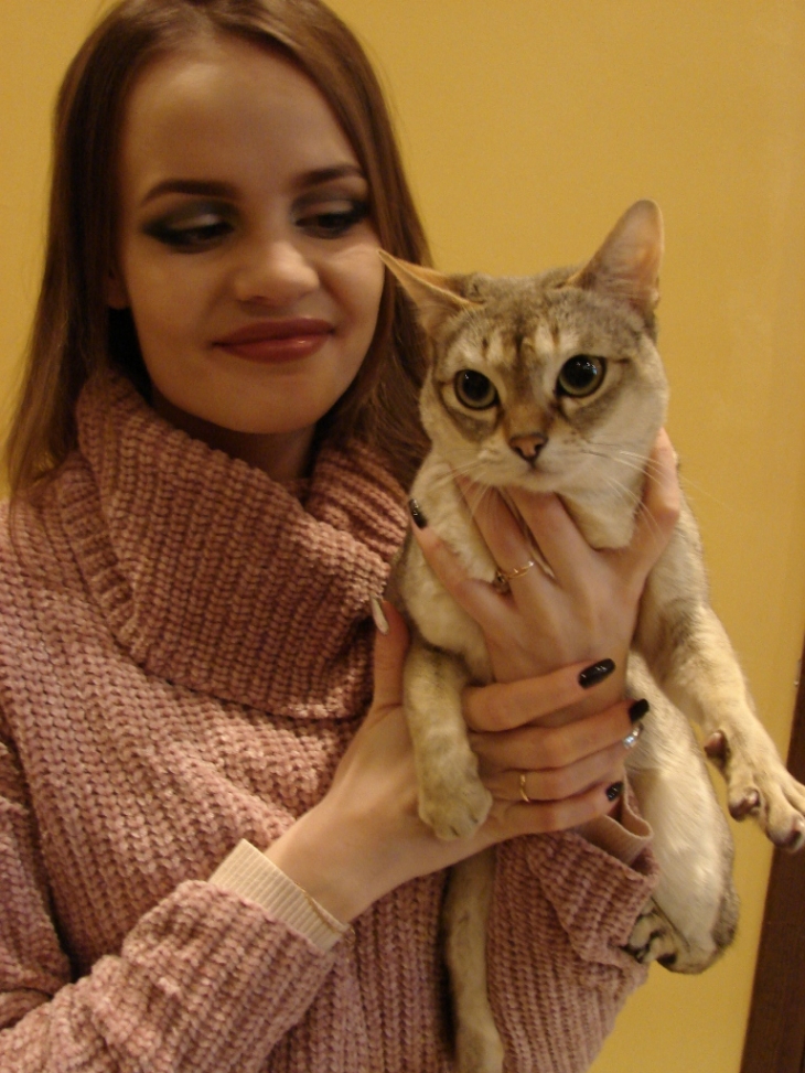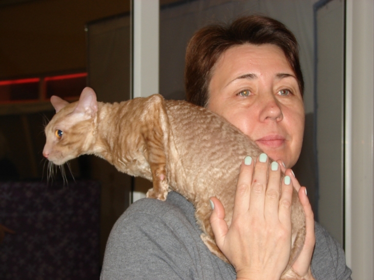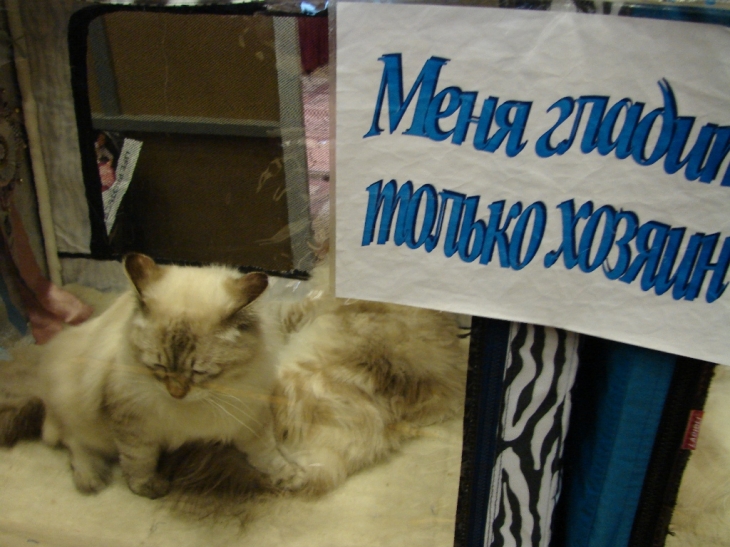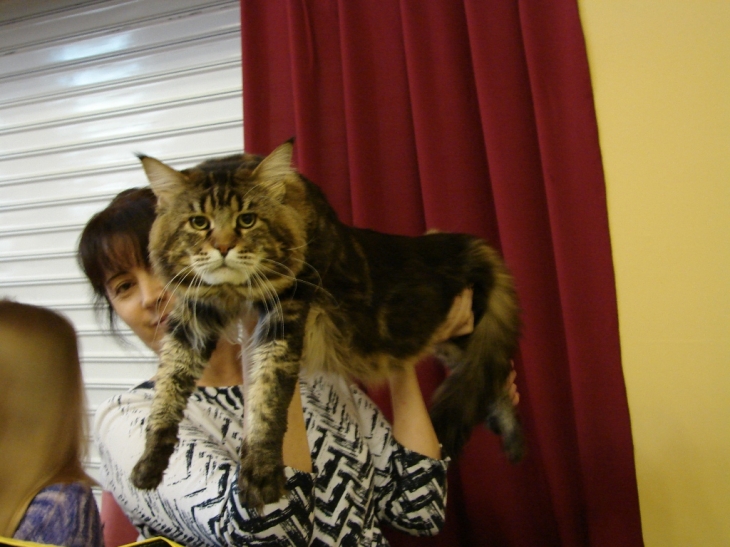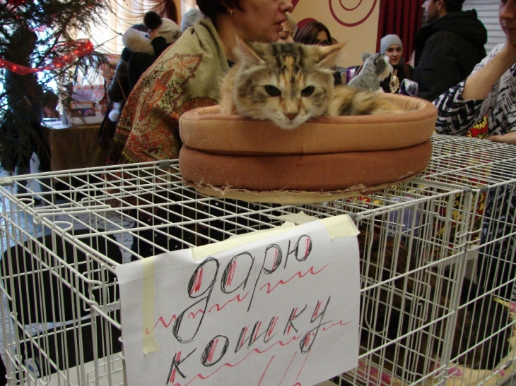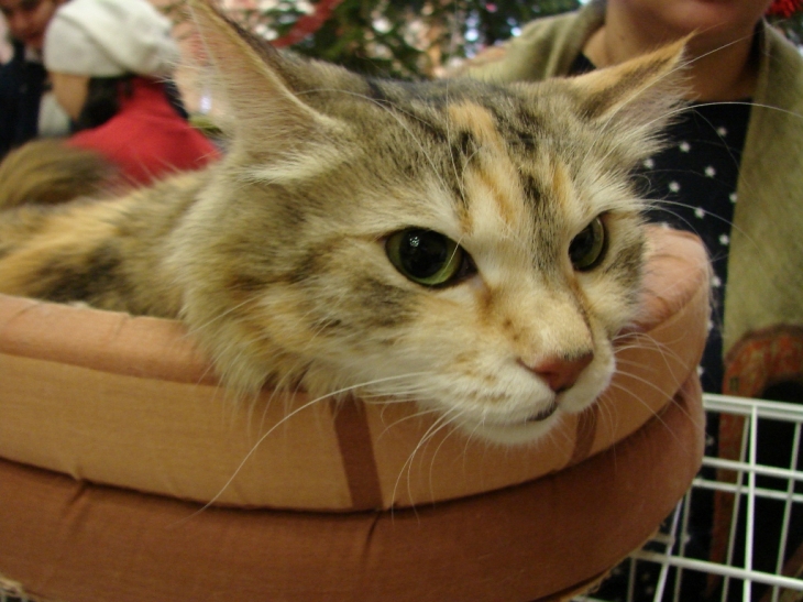 На сегодняшней выставке новых хозяев искали спокойному и воспитанному бесхвостому бобтейлу. Как объяснила ее хозяйка, более молодые и активные кошки не дадут житья бывшей лидерше кошачьего коллектива. Поэтому животное будет гораздо счастливей себя чувствовать в новой семье, чем если будет пытаться сохранить свое положение в старой стае