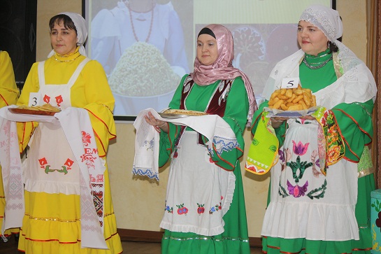 Сначала они представились и кратко рассказали о себе и своей семье. Выяснилось, что у каждой 3 и больше детей. Вторым выходом был творческий номер. Кто-то из мам читал стихи Мусы Джалиля, кто-то пел колыбельную. Самым интересным стал «вкусный» этап конкурса: многодетные мамы презентовали блюда татарской кухни, приготовленные по собственным рецептам. Подносы с перемячами и кыстыбый наполнили зал аппетитным ароматом, но сразила строгое жюри губадия, приготовленная Разиной Гайнутдиновой.