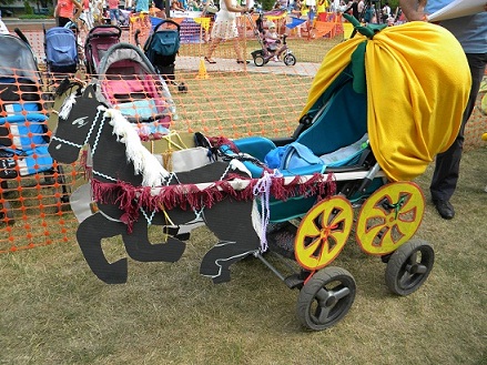 Иногда для участия в параде нужно не так много времени. Ирина Фомина узнала о параде за день до события. За 4 часа, прямо в день парада она вместе с папой и мамой преобразила коляску пятимесячной Рианы. "Дома был оранжевый плед, он и задал идею кареты для Золушки и стал тыквой"
