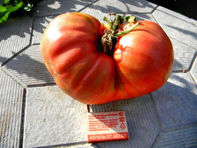 Челнинка Равиля, живущая в поселке Мироновка, вырастила на своём участке помидор сорта "Бычье сердце" весом 1100 граммов. Как сказала хозяйка участка, семена она не покупала, а вывела сама. И удобрений никаких, кроме навоза, на грядку не вносила.