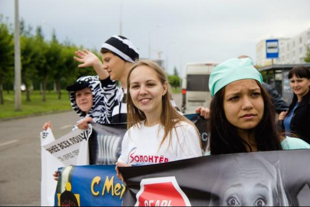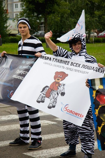 Активисты из Добровольческого Движения "Волонтёр" провели акцию, в которой сыграли роль "Волонтёра" "Зебры", "Врача", "Заключенного". Они напоминали водителям и пешеходам на проспекте Чулман о последствиях нарушения ПДД. Весёлая "Зебра", рассказывала, что она главнее «всех лошадей, находящихся у Вас под капотом». "Врач" просил водителей сбавить скорость, предотвратив тем самым наступление ДТП. "Заключенный" рекомендовал не спешить за решётку… Позитивный "Волонтёр" поздравляюл всех со «своим днем»!