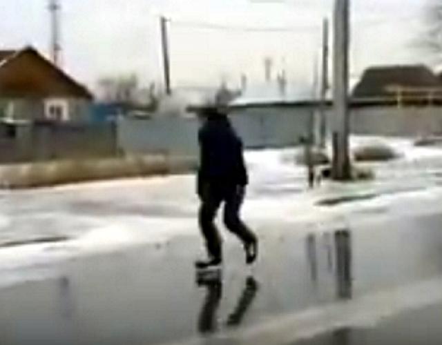 Житель Татарстана воспользовался гололедом и прокатился по дороге на коньках (видео)