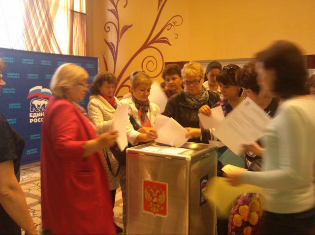 Голосование шло в фойе. На него было отведено всего 10 минут. Полтысячи делегатов стихийно нашли способ проголосовать всем и вовремя. Они сначала подходили к урнам по одному, а потом обступили их со всех сторон и, чтобы не терять время на лишние передвижения, часто через головы уже проголосовавших передавали свои бюллетени тем, кто стоял непосредственно у ящиков с прорезями.