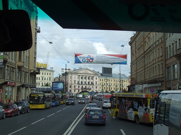 Вся северная столица увешана флажками и растяжками с логотипом предстоящего саммита.