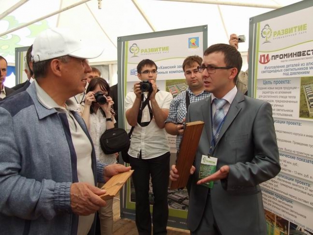 Промпарк «Развитие» (рядом с ТЭЦ) пока представляет собой подготовленный к строительству земельный участок площадью 12,5 гектара. Фундамент здесь появится в сентябре этого года, а полностью парк планируют запустить в 2015 году. Для работы здесь отобраны 17 резидентов (производство мебели, автокомпонентов, металлообработка, литейное производство и т.д). Вместе эти предприниматели вложат в парк 600-800 миллионов рублей, естественно, надеясь, на дальнейшую прибыль. «У меня трое детей, двое из них - мальчики, - рассказал президенту один из предпринимателей. - Мне надо оставить им дело». Рустам Минниханов такую дальновидность похвалил и пожал предпринимателю руку.
