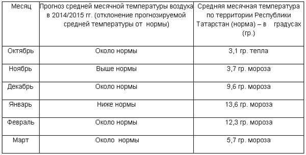 Для территории Республики Татарстан вероятностный прогноз температурного режима выглядит следующим образом (вероятность 60-70%):