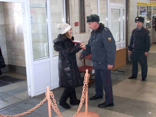 Теперь при входе в здание железнодорожного вокзала и со стороны города, и со стороны перрона стоят сотрудники милиции с ручными металлодетекторами, проверяя каждого входящего. Невозможно укрыться от стражей порядка и внутри строения. Только наш корреспондент взялся за фотоаппарат, как рядом с ним оказались люди в форме: