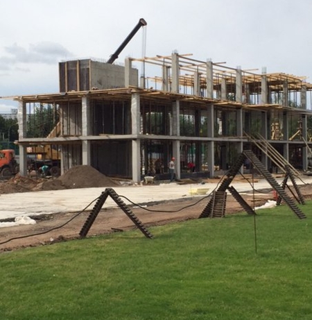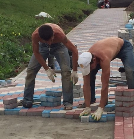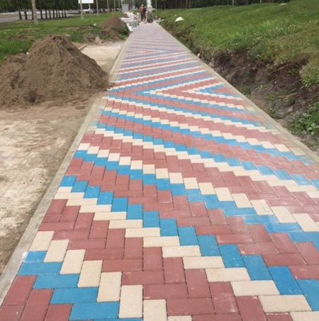 Еще один цветной тротуар, ведущий к стадиону "КАМАЗ", появится в парке Гренада. Его Магдеев сфотографировал в ходе инспекции строительства новой спортивной арены: