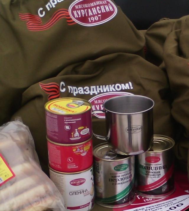 Курганский мясокомбинат проспонсировал деньгами и выделил свою продукцию участникам автопробега «Зауральцы — дорогами великой победы». По ходу следования пробега эти вещмешки с тушенкой будут вручаться ветеранам. Автопробег стартует с 23 апреля – на его пути одна из остановок запланирована в Набережных Челнах.