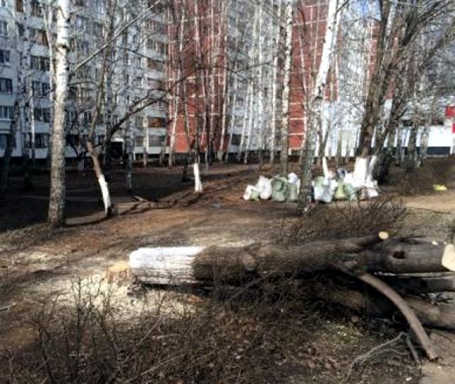 Вырубленные берёзы возле дома 49/25 исполком обещает заменить деревьями ценных пород