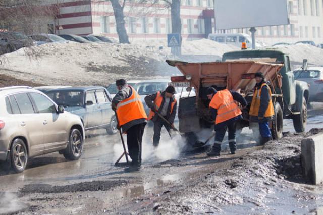 "Времена меняются, появилась современная техника, которая позволяет нагревать асфальт в любую погоду, - объясняют специалисты из МУП «ПАД» в городе Набережные Челны. - Поэтому в экстренных случаях можно ремонтировать аварийные ямы не дожидаясь потепления". В отделе дорожного хозяйства горисполкома говорят, что предприятие автодорог имеет самоходную машину, разогревающую асфальтобетонную крошку, а также "кохер" для просушивания ям и заливки стыков.