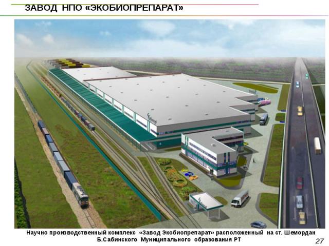 Общий объем инвестиций в проект - 7.2 млрд. рублей. Будет организовано 1160 новых рабочих мест. Срок окупаемости проекта 10 лет. НПО "Экобиопрепарат" зарегистрировано в городе Набережные Челны в 2013 году. По данным «Контур-Фокус», основная доля уставного капитала принадлежит частным инвесторам, 5% владеет «Татнефтехиминвест-холдинг», еще 7.5% принадлежит российским научным учреждениям.