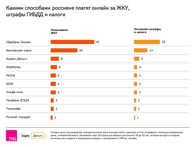Компания «TNS Россия» изучила, как через интернет жители крупных городов Приволжского федерального округа оплачивают коммунальные услуги, а также погашают штрафы ГИБДД и налоги. В исследовании участвовали люди в возрасте 18–55 лет из городов с населением от 700 тыс. человек. Участники опроса заходят в интернет минимум раз в неделю.