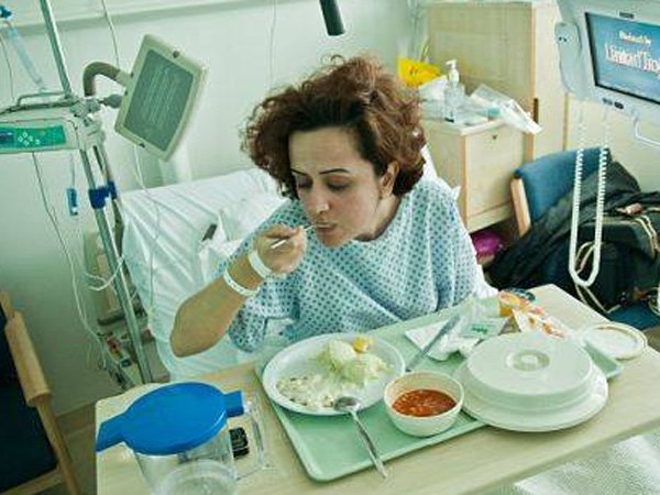 Согласно меню, на завтраки больным будут давать каши и чай без сахара, на обед – салаты из свежих овощей, диетические нежирные супы, мясные блюда, приготовленные на пару или тушенные с гарнирами из круп, картофеля или овощей и компот без сахара. Первый ужин будет состоять преимущественно из мясных диетических блюд с гарнирами из круп и несладкого чая. А на второй ужин пациентам будут давать яблоки и чай без сахара.
