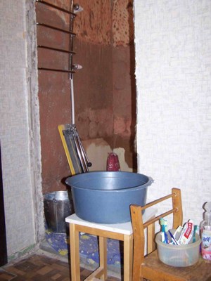 Так она и живет: на месте ванны бетонная дыра с торчащими из стен новыми трубами с заглушками. В коридоре на табурете примостились тазик и ведра. В договоре об оказании услуг окончание ремонта было обозначен концом марта. Ладно, соседи понимающие и дружные — пускают помыться в ванной. А от «мастера» слышны только обещания, что он все сделает.