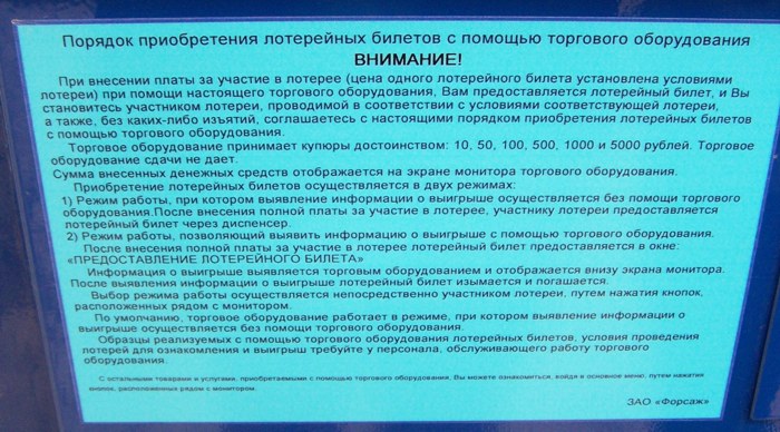 Действительно, сооружение с надписью "Реализация лотерейных билетов" около магазина есть. Корреспондент "Челны ЛТД" лично испытал свое везение. Опустив 50-рублевую купюру в прорезь, он увидел лишь мелькание цифр на экране и бегающего человечка, а "приз" - монетку в 5 рублей - выдала сидящая в будочке женщина. Она же сказала, что никаких лотерейных билетов игроку не выдают. В чем отличие этой "лотереи" от "игрового автомата"?