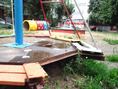 От редакции: В городе есть еще 49 игровых площадок, числящихся на балансе городского исполкома. Состояние большинства из них недавно проверила городская прокуратура. С начала этого года в суд поступило 16 исковых заявлений с требованием обязать городские власти установить на площадках информационные стенды с телефонами экстренных служб и завести журналы регулярного осмотра состояния оборудования. По словам помощника прокурора города Камиля Монасыпова, выявленные нарушения — не из числа серьезных. Но исполкомом уже выделено 5 миллионов рублей на приведение площадок в порядок. А вот площадки, находящиеся в собственности жильцов домов, то есть по мнению прокуроров — бесхозные, за которые формально, никто не несет ответственность - прокурорская проверка пока не охватила. А значит — ждать там появления хотя бы информационных стендов и журналов осмотра пока не приходится.