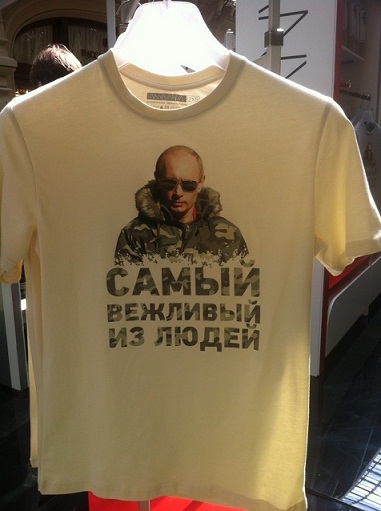 С сегодняшнего дня в цитадели российского гламура - московском ГУМе - продается коллекция модных футболок с изображениями президента РФ. Ее авторы, дизайнеры, объединенные логотипом "аняваня", сообщают, что эта коллекция посвящена "последним победам России на мировой арене". На футболках - принты 15 видов.
