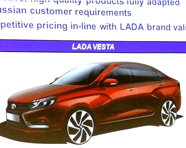 Фотография новинки "АвтоВАЗа" Лада Веста, сделанная на одной из конференций тольяттинской автокомпании, была размещена в интернете группой Just Lada.