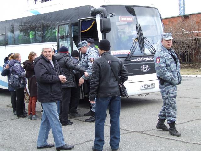 Организованная колонна из шести автобусов отправилась в соседний город в сопровождении челнинского ОМОНа. Болельщиков сразу довезли до стадиона «Нефтехимик», запретив покидать территорию спортивного объекта. Тех, кто желал прогуляться до начала матча по городу, ожидало разочарование. Более того, около 250 поклонников «КАМАЗа» (независимо от возраста) ожидал двойной кордон уже со стороны сотрудников нижнекамской полиции. Их вновь обыскивали, а перед рамками металлоискателя была установлена видеокамера и каждого болельщика просили назвать свою фамилию, имя, отчество. После чего, наконец, болельщик мог оказаться на трибуне.