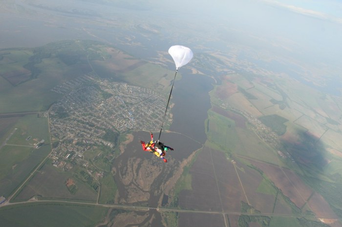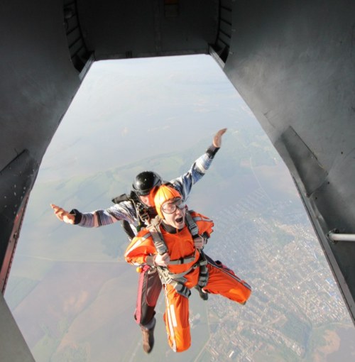 Прыжок, который выбрал Ильсур, называется «тандемным». Он проходит с инструктором, со спецпарашютом на 2 человек, который имеет форму крыла и большую площадь. Парашют находится за спиной инструктора, а ваша подвесная система соединяется с подвесной системой инструктора.