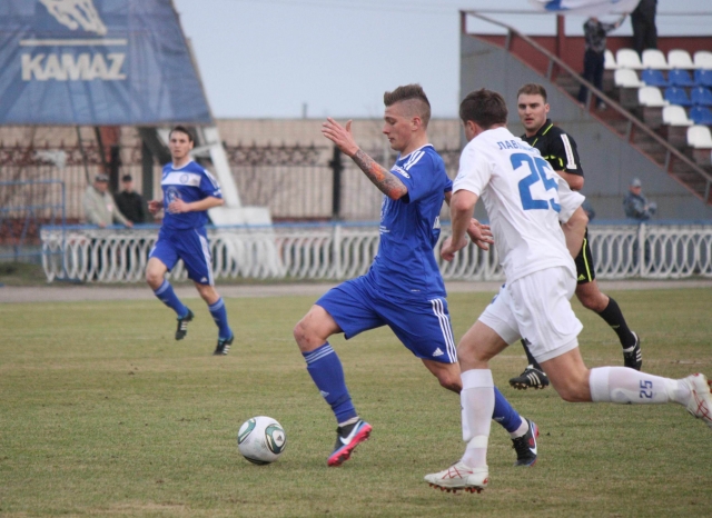 В Набережных Челнах стартовала заключительная часть первенства России по футболу 2012-13 гг. среди команд второго дивизиона зоны "Урал-Поволжье". "КАМАЗ" принимал на своем поле команду из Самарской области "Сызрань-2003".