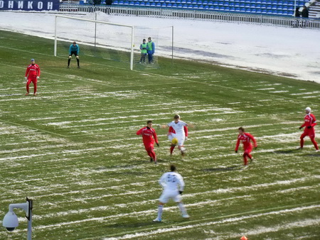 "КАМАЗ" с первых минут начал обстоятельно "окучивать" половину поля соперника. И уже на 10 минуте после подачи углового Владимир Клонцак послал головой мяч в ворота "Спартака". Через 4 минуты счет удвоил Дмитрий Маскаев.