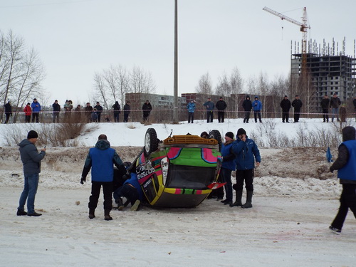 Несмотря на теплую погоду, ледовое покрытие на 1600-метровом круге ипподорома все же сохранилось, только в некоторых местах появились выбоины, заполненные водой. Это, конечно, осложняло борьбу. На одном из таких участков, в своем втором заезде Наталья Гольцова столкнулась с другим гонщиком, Владимиром Николаевым. Ее машину утащили на тросе, но все же восстановили к следующему заезду. А вот в нем Гольцовой не повезло еще больше. На первом же вираже ее автомобиль прижали к внутреннему бурту, она зацепила снежно-ледяной вал и перевернулась. На сленге гонщиков это называется "поймать крышу". Гонщица сама выбралась из лежащего вверх колесами автомобиля. Но ее все же увезли на скорой помощи в больницу для обследования.