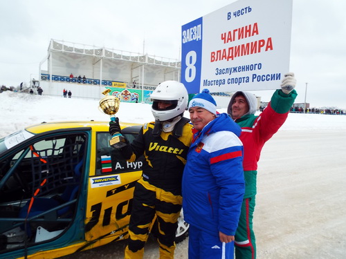 Каждый заезд посвящен одному из известных гонщиков и победителю вручается отдельный малый кубок. Например, заезд в честь заслуженного мастера спорта России Владимира Чагина выиграл Айдар Нуриев. В перерывах между заездами взрослых соревнуются юные гонщики. Среди них сын организатора соревнований Салавата Фатхетдинова Рустам, а также братья Кирилл и Иван Юрковы из города Чайковский и Василий Шамшурин из Ижевска. А борьба за большой Кубок продолжается. О результатах гонок мы сообщим позже.
