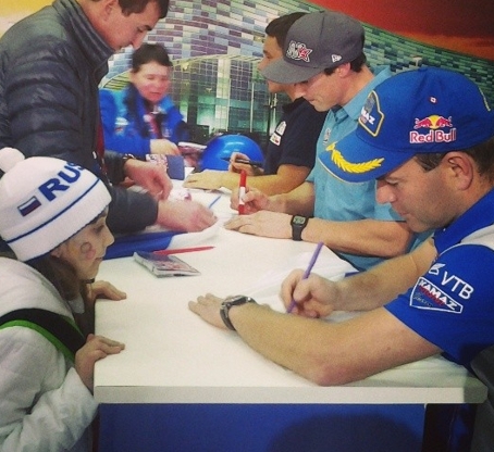 В Сочи, в Доме болельщиков на Олимпиаде, прошла встреча с участниками ралли-рейда "Дакар 2014". Пилот челнинской команды "КАМАЗ-мастер" Андрей Каргинов вместе с победителем в категории "Квадрациклы" Сергеем Карякиным и мотогонщиком Алексеем Наумовым провели для всех желающих автограф-сессию, рассказали болельщикам о трудностях, с которыми им пришлось столкнуться во время гонки, и поделились своими впечатлениями от олимпийского Сочи. В частности, Каргинов отметил, что здесь впервые сходил на хоккей. И несмотря на то, что наша сборная проиграла финнам, остался под впечатлением от увиденного.
