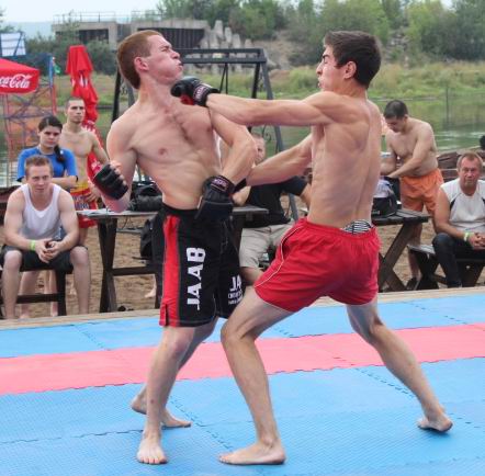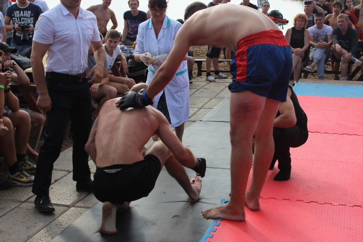 Сегодня всех челнинских любителей смешанных единоборств ожидал настоящий праздник - в Набережных Челнах на пляже «Sundale” прошел открытый турнир по боевым искусствам по правилам MMA. Соревнования организованы Федерацией боевых единоборств нашего города в лице группы единомышленников, которые хотят продвигать этот вид спорта в Челнах — это Асхат Галеев, Эльдар Валиахметов, Станислав Писцов. Айрат Тагиров предоставил для боев свой пляж, где площадка для танцев на время стала рингом. Бои проходили в двух весовых категориях — до 70 килограмм, и свыше 70 килограмм. Для участия заявились 16 спортсменов. Среди них были боксеры, кикбоксеры, дзюдоисты, каратисты, и даже борец-куреш. Каждый старался использовать свои сильнейшие качества, придерживаясь определенной тактики боя.
